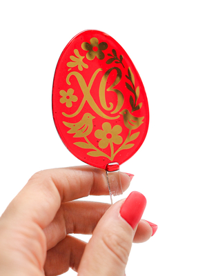Пасхальный декор 'Красное яичко с золотым орнаментом'