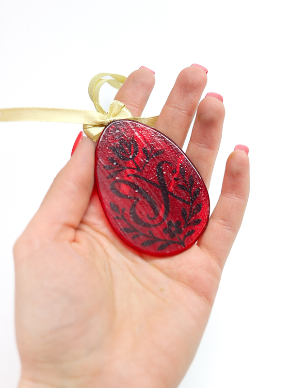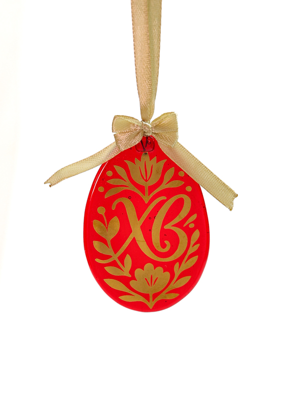 Пасхальный декор 'Красное яичко с золотым орнаментом'