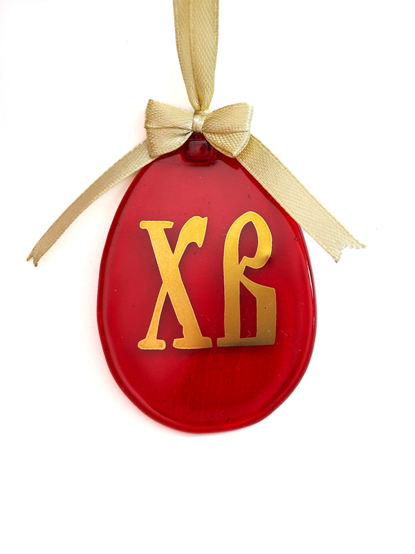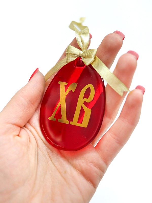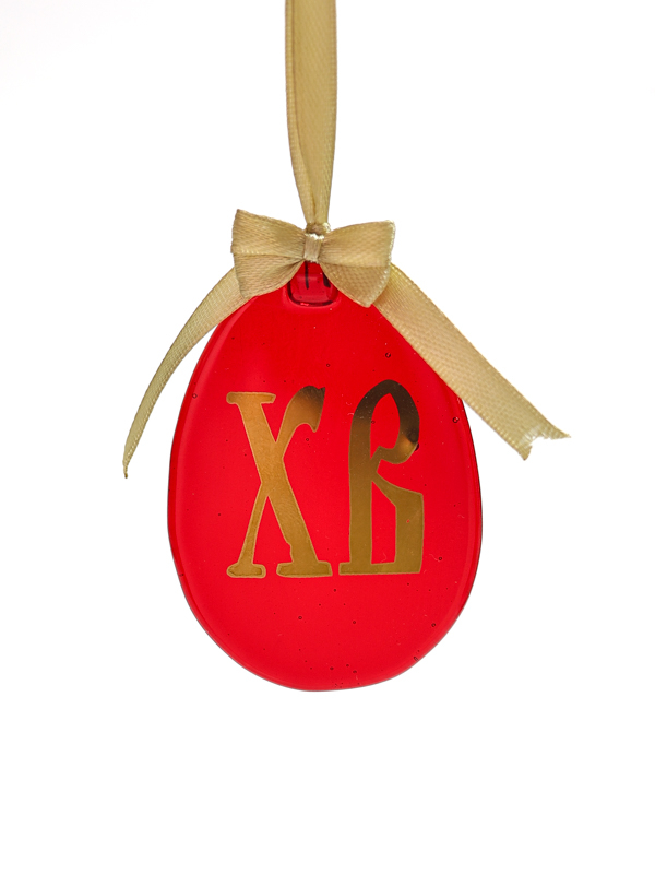 Стеклянное пасхальное яйцо с авторским орнаментом, выполненным настоящим золотом.