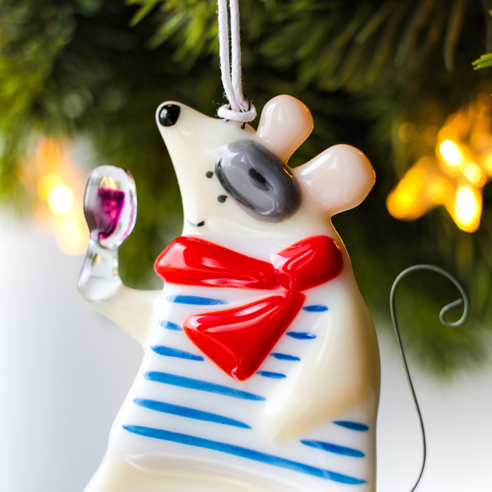 Новогодняя игрушка 'Мышонок с сыром' (сливочный)