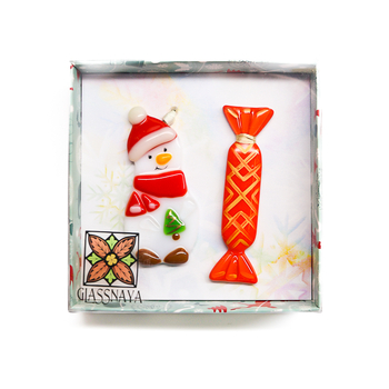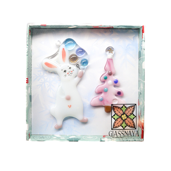 | Техника изготовления: | игрушки сделаны полностью из стекла в технике фьюзинг или спекание ( подобно мозаике, изделие собирается из отдельных фрагментов, предварительно вырезанных и обточенных из соответствующего цвета листового художественного стекла, затем сплавляется в печи на температуре 800°C) |