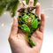 Новогодняя игрушка 'Зелёный дракон, спящий на сундучке сокровищ'