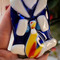 | Техника изготовления: | игрушка сделана полностью из стекла в технике фьюзинг или спекание ( подобно мозаике, изделие собирается из отдельных фрагментов, предварительно вырезанных и обточенных из соответствующего цвета листового художественного стекла, затем сплавляется в печи на температуре 800°C) |