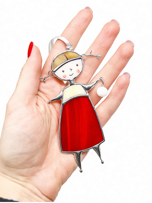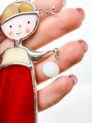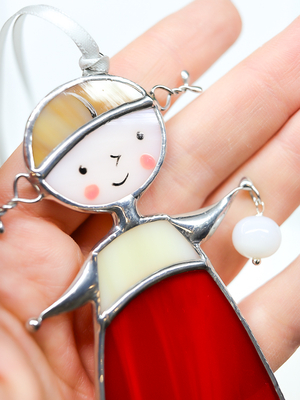 Витражная подвеска 'Голубой ангелочек с арфой' (7 х 12,5см)