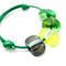 Браслет из цветных спеченных стёклышек на хлопковом раздвижном шнуре. При движении запястья стеклянные "костяшки" звонко цокают друг об дружку.