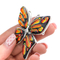 Техника исполнения: украшение совместило для техники: фьюзинг или спекание ( подобно мозаике, изделие собирается из отдельных фрагментов, предварительно вырезанных и обточенных из соответствующего цвета листового художественного стекла, затем сплавляется в печи на температуре 800°C) и технику паяного витража Тиффани. Украшение изготовлено полностью вручную.