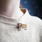 Замок: посеребрённый замок-булавка с поворотной застёжкой.