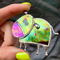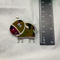 брошка собрана из кусочков стекла, предварительно обточены и обмотаны медной лентой, затем спаяны оловянным припоем, такой способ сборки витража называется Тиффани