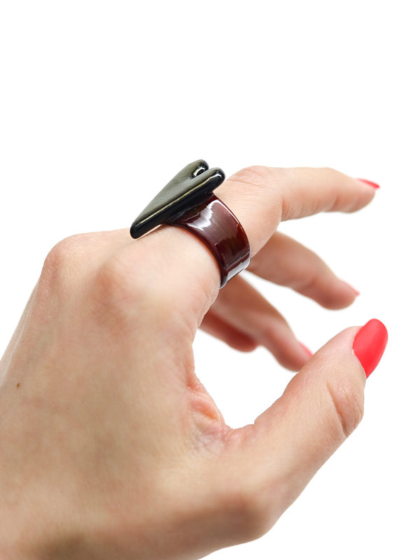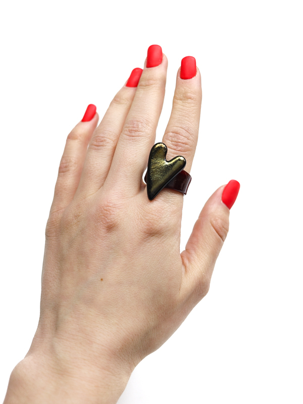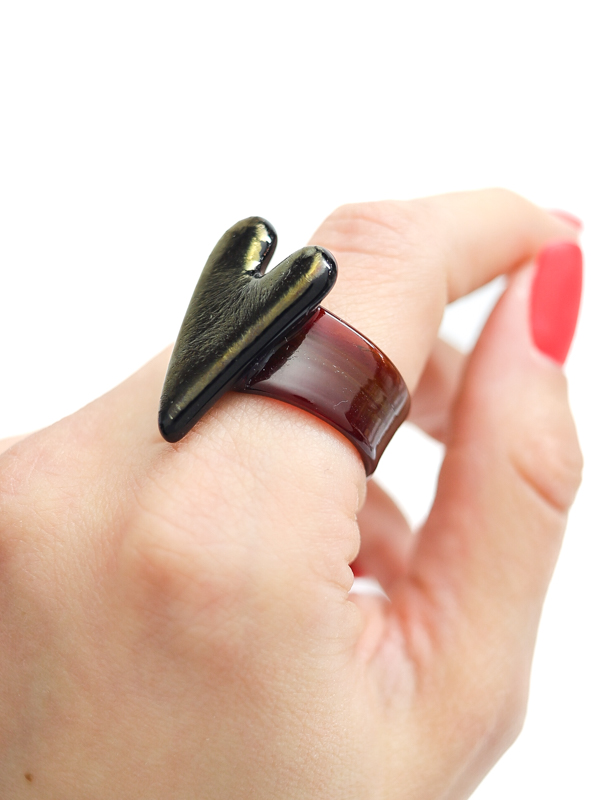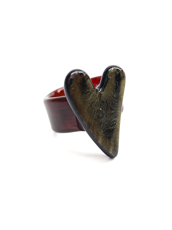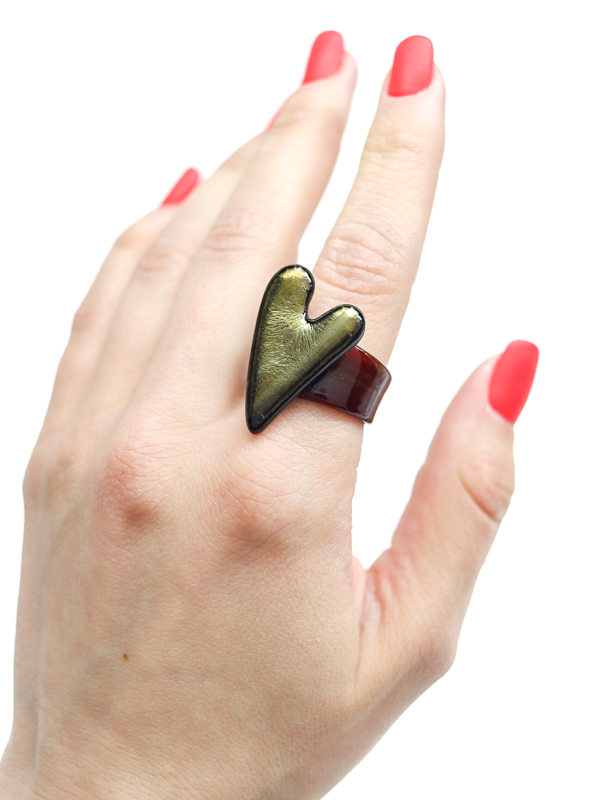 Стеклянное сердце с глубоким тёмным оттенком и золотистым переливом на тёмно-бордовой стеклянной шинке.