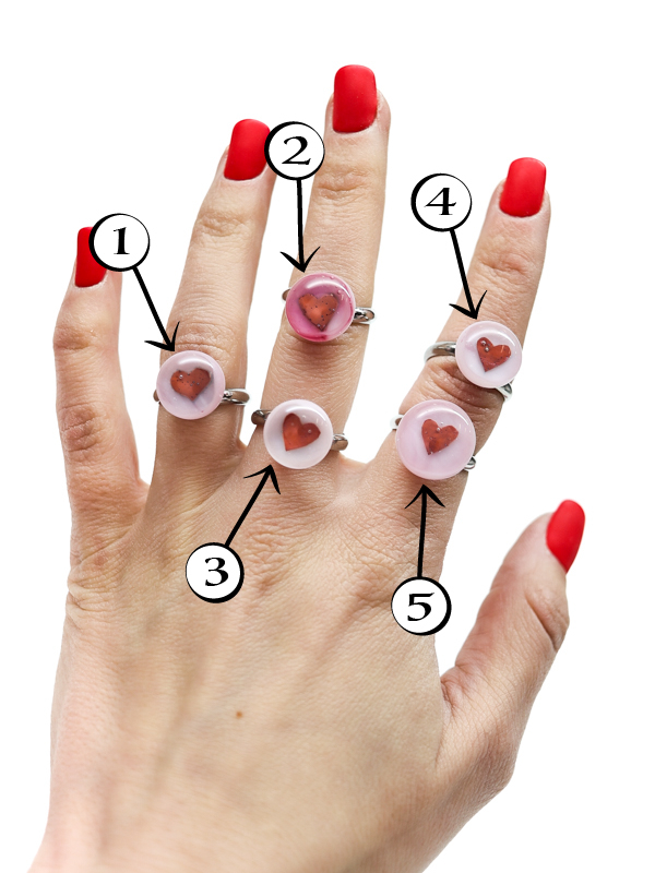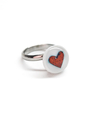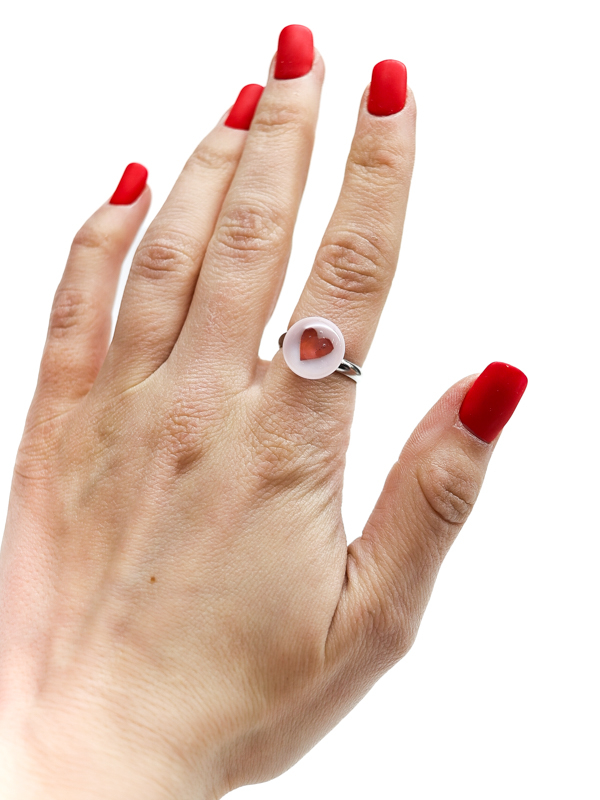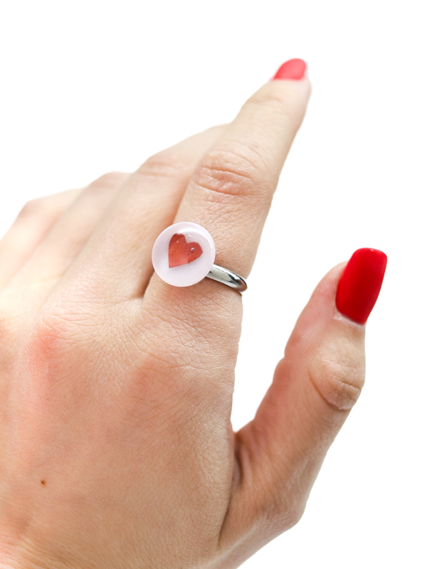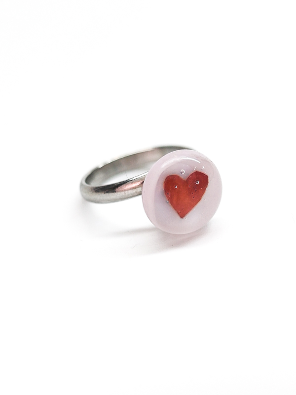 Кольцо со стеклянным кабошоном в розовой гамме с медным сердечком. Контрастное сердце создаёт простой и выразительный акцент.