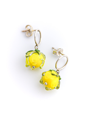 Серьги 'Жёлтая хризантема на маленьком колечке'