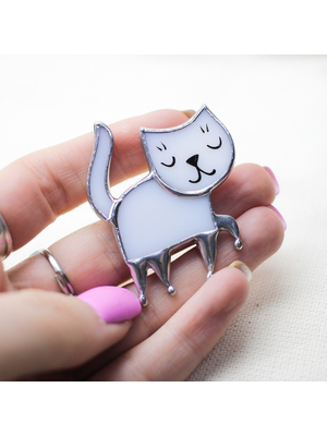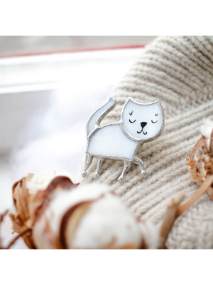 Брошка 'Белая кошка, гуляющая сама по себе'
