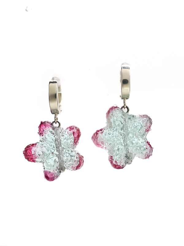 • Техника исполнения. Украшение выполнено в технике лэмпворк — каждую стеклянную звезду мастер формует вручную в пламени горелки. В процессе стекло приобретает выразительную "сахарную" фактуру: искристую, с мягким, тёплым мерцанием. Каждая пара уникальна и существует в единственном экземпляре.