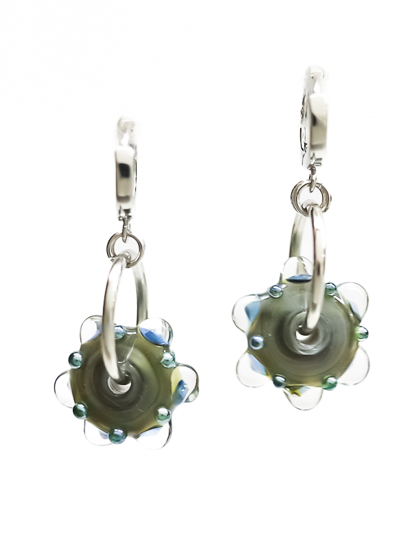 • Техника исполнения: в основе украшения лежит стеклянная бусина, выполненная в технике лэмпворк. Мастер создает настоящее произведение искусства, работая с горячим стеклом в открытом пламени горелки.