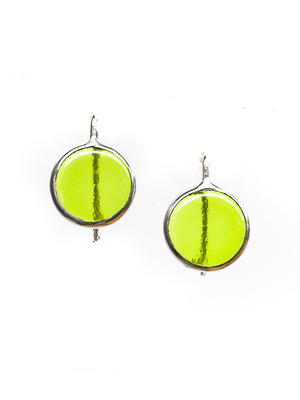 Серёжки объединённые идеей круга. В основе оплавленное цветное прозрачное стёклышко в оловянной окантовке. Маленькие аккуратные и минималистичные.