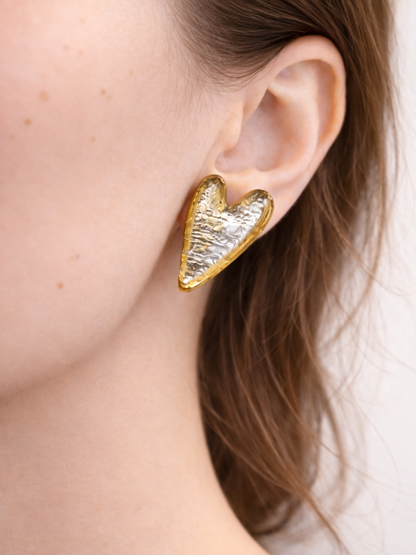 Серьги из стекла с фактурной поверхностью и покрытием из натурального золота. Неровная текстура создаёт живое сияние и подчёркивает форму.