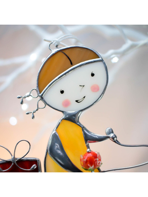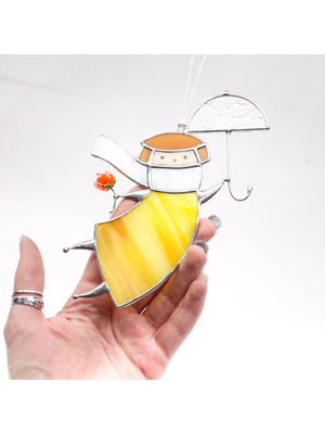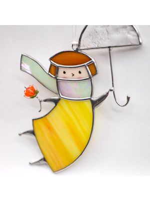 Витражная подвеска 'Мечтательница в жёлтом' (14 х 15см)