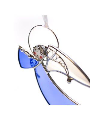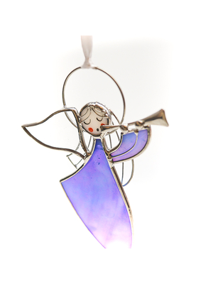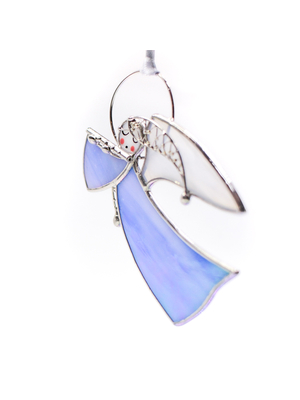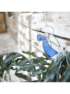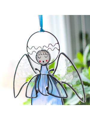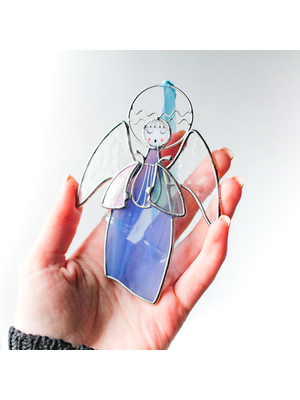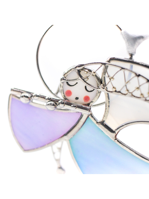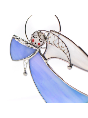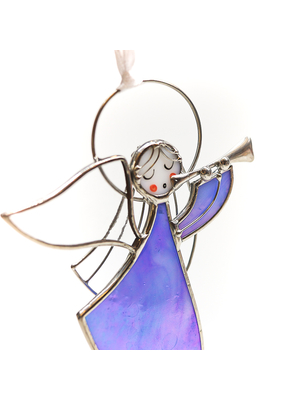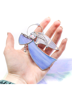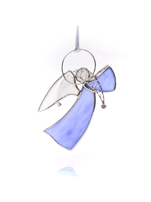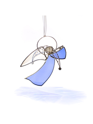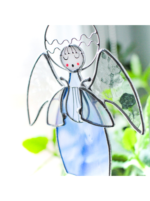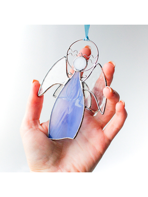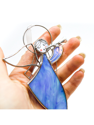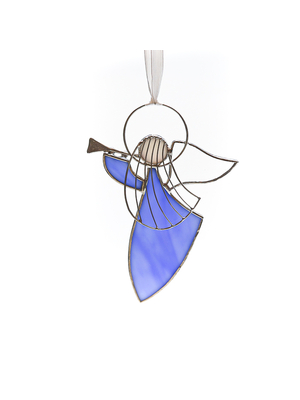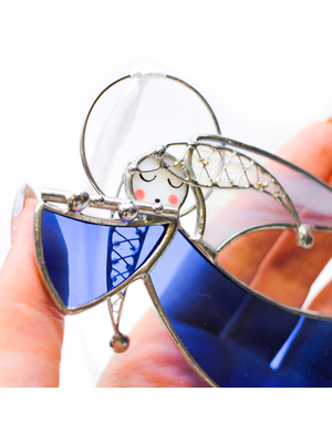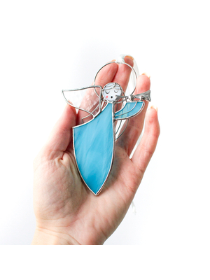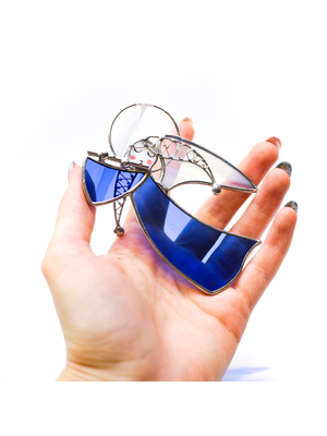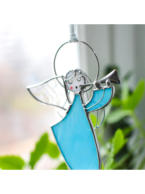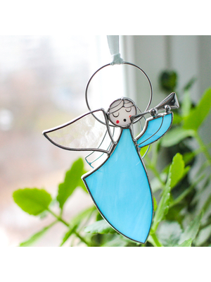 Витражная подвеска 'Голубой переливающийся ангел с флейтой'