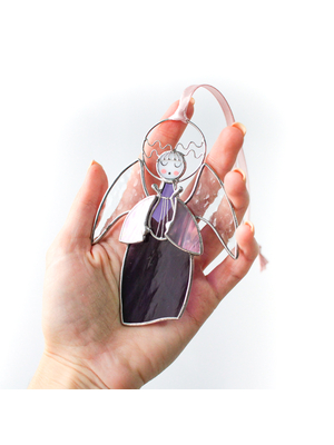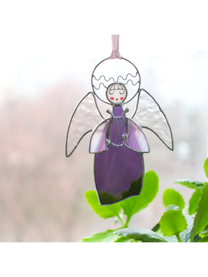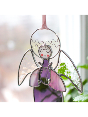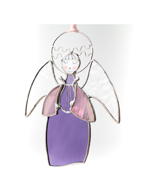 Витражная подвеска 'Фиолетовый прозрачный ангел с арфой' (7 х 12,5см)