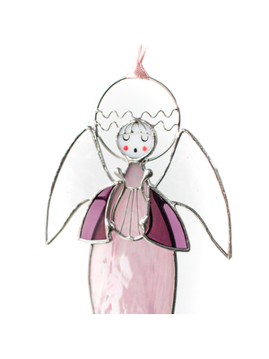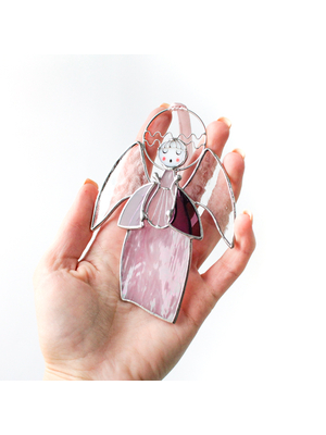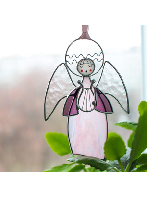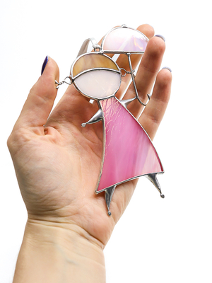 Витражная подвеска 'Розовый ангел с арфой' (7 х 12,5см)