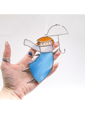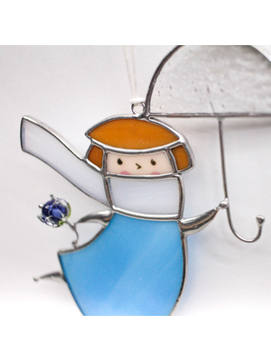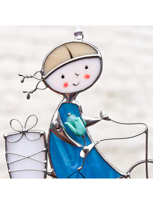 Витражная подвеска 'Мечтательница в голубом' (14 х 15см)
