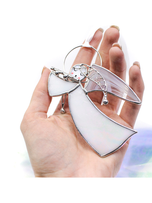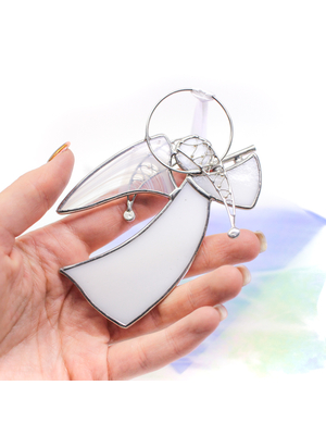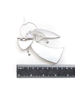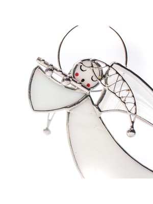 Витражная подвеска 'Белый переливающийся ангел с флейтой'