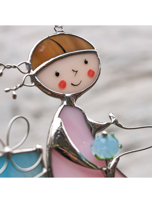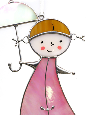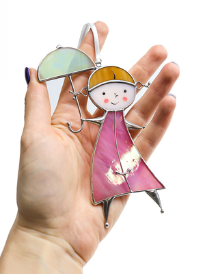 Витражная подвеска 'Девочка с книжками в сиреневом'