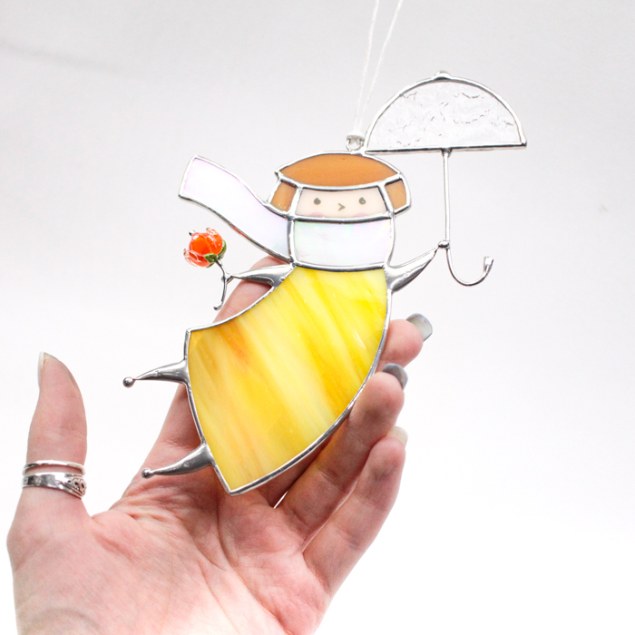 Вслед за мечтами с нашей очаровательной витражной девчонкой, летящим под зонтиком, как волшебница Мэри Поппинс! Образ близкий и взрослым, и детям, очень нежный душевный подарок.