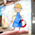 Витражная подвеска 'Голубой ангелочек с арфой' (7 х 12,5см)