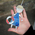 Витражная подвеска 'Небесно-голубой ангел с дудочкой' (12 х 8,5 см)