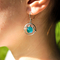 Декор: оловянные капельки-слезинки добавляют украшению игривости, а переливающееся стекло, в основе серёжек, и выпуклый запечённый кабошон - сияния и шарма.